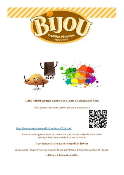 > Actualités > L'Association des Parents d'Élèves organise une vente de Madeleines Bijou